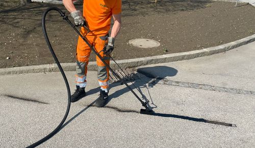 Dünne Asphaltdeckschicht kalt (DSK) im Handeinbau eignet sich für Schadstellen im kleineren Umfang. Das DSK-Material wird direkt an der Einbaustelle gemischt. Dabei wird exakt die Einbaumenge, die benötigt wird, produziert und von unseren Facharbeitern von Hand eingebaut.