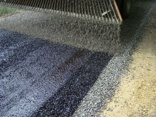 Durch den Einsatz von farbigen Splitten ist es möglich, Wege und Plätze entsprechend den Wünschen des Kunden zu gestalten. Dabei kommen grobe Gesteinskörnungen mit den Korngruppen 2/5 und 5/8 zum Einsatz. Je nach Anforderung setzen wir als Bindemittel Bitumenemulsionen, Schlämmen oder Heißbindemittel ein, die je nach Einsatzzweck farblos, schwarz oder in bestimmten Grundfarben lieferbar sind.